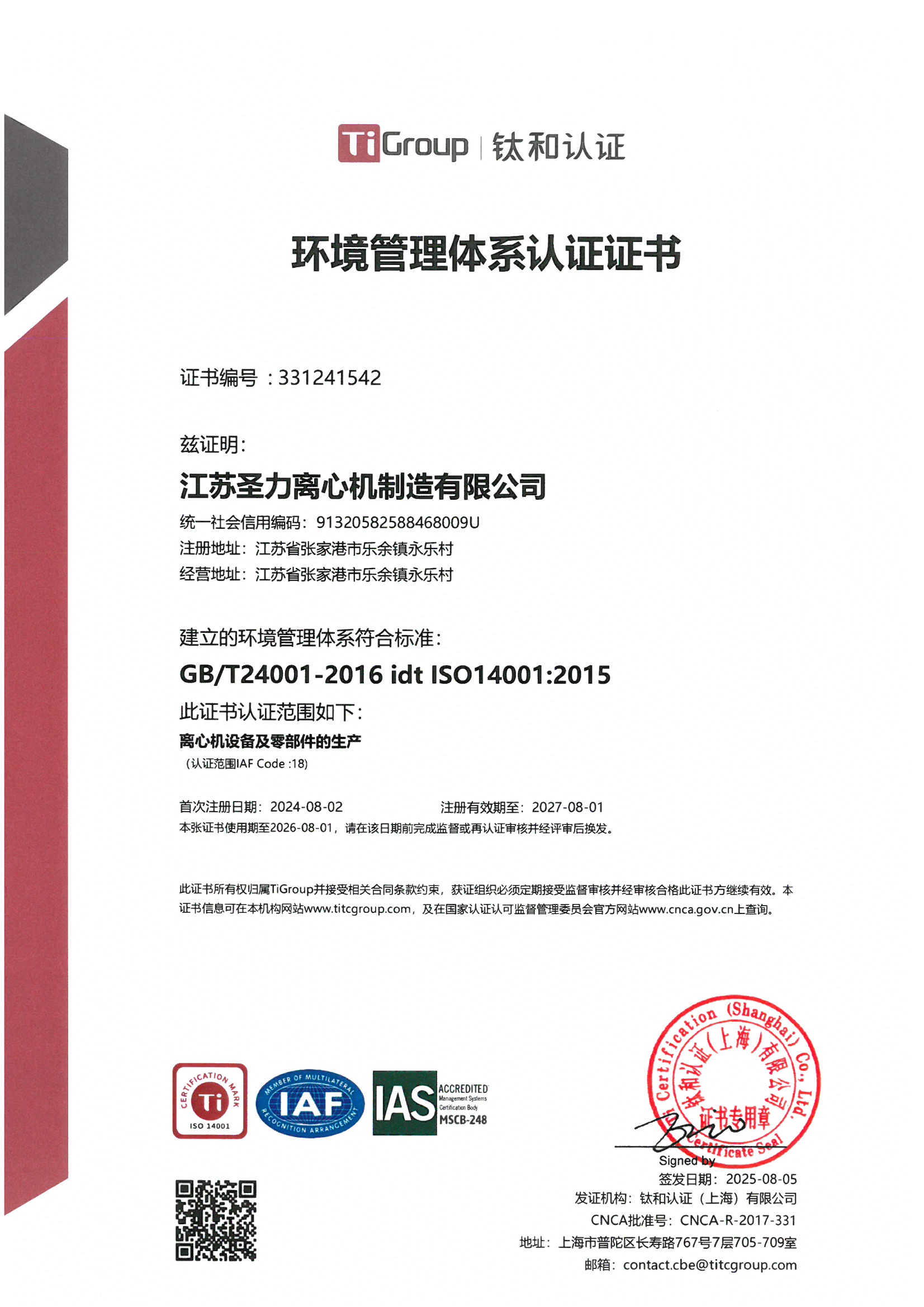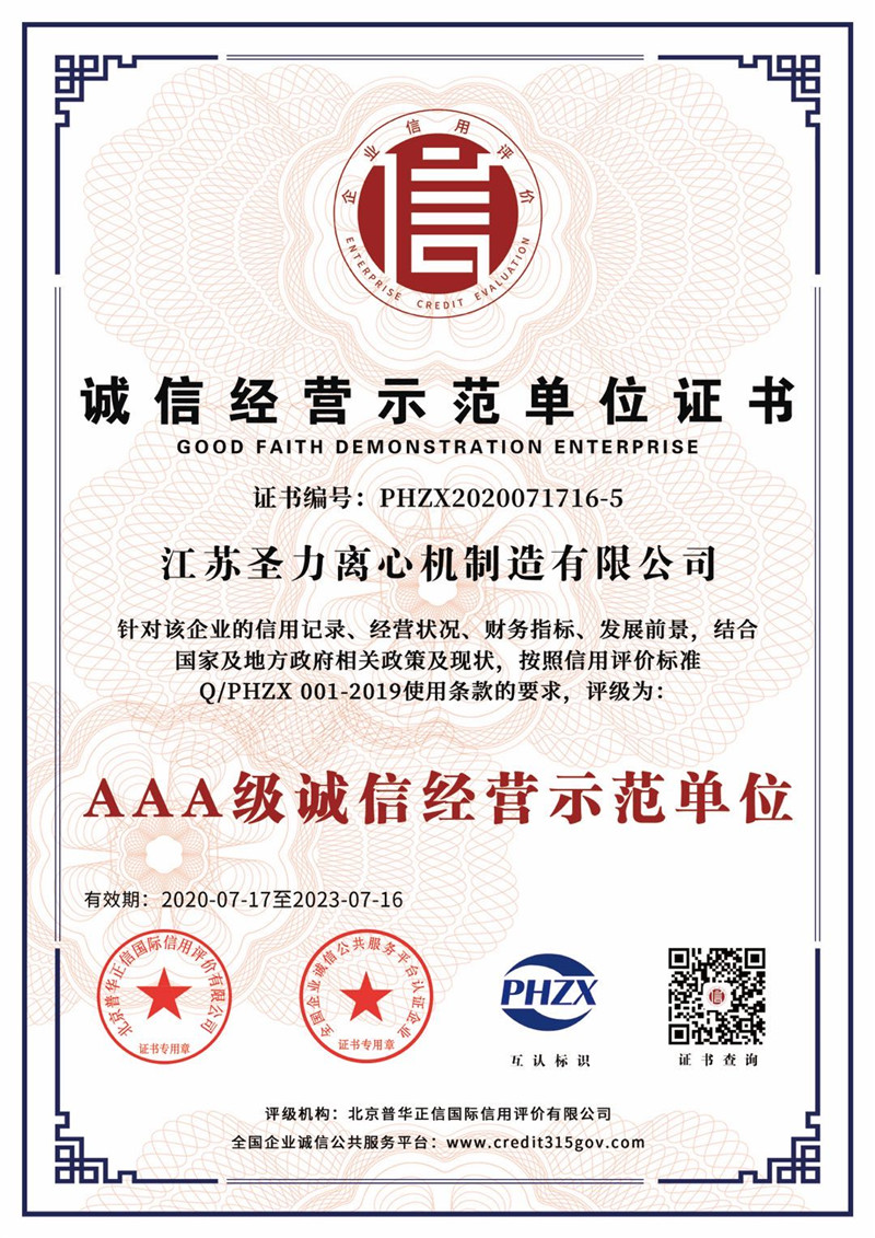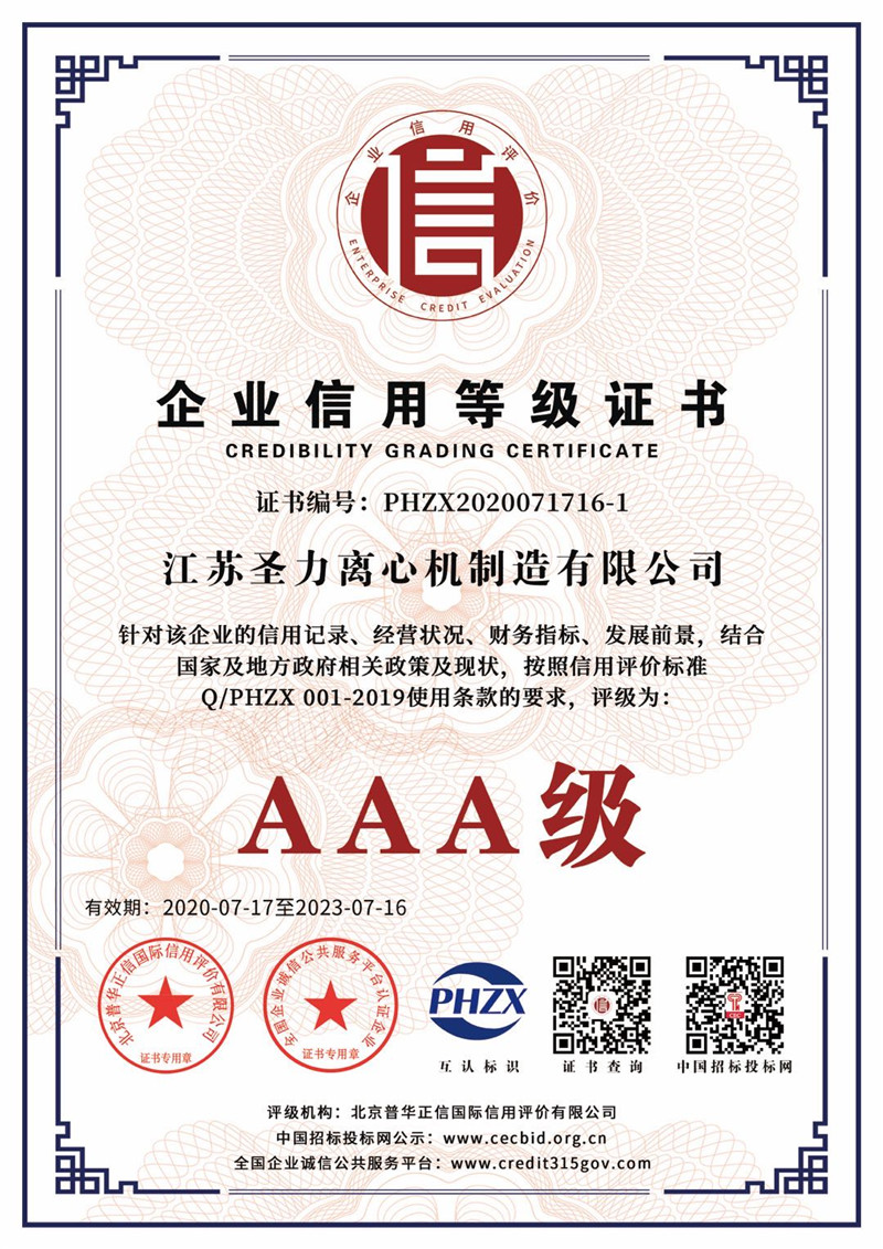江蘇圣力離心機(jī)制造有限公司是國內(nèi)分離機(jī)械行業(yè)中主要的離心機(jī)生產(chǎn)企業(yè),對(duì)離心機(jī)的研究、設(shè)計(jì)、制造有多年的歷史,擁有齊全的設(shè)備、完善的檢測(cè)手段。公司已通過IS09000國際質(zhì)量體系認(rèn)證、ISO14001環(huán)境管理體系認(rèn)證、ISO45001:2018職業(yè)健康安全管理體系認(rèn)證和CE認(rèn)證,是江蘇省高新技術(shù)企業(yè),曾榮獲國家和地方多項(xiàng)榮譽(yù)稱號(hào)。
